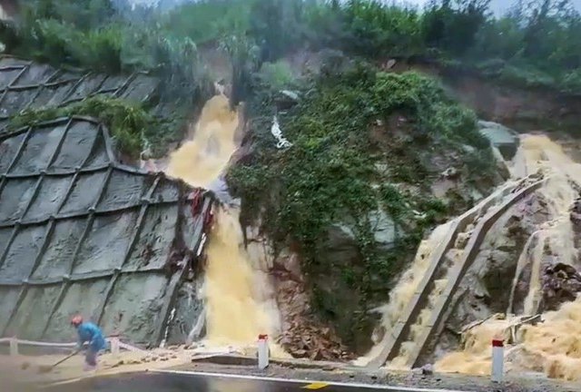 Nước lũ chảy như thác xuống đèo An Khê, Gia Lai cấm phương tiện qua lại
