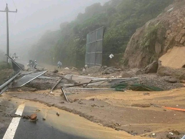 Ta luy dương tại Km 905+600 đèo Hải Vân (địa phận Đà Nẵng) bị sạt lở do mưa lớn kéo dài. Lực lượng chức năng phân luồng các phương tiện di chuyển qua hầm Hải Vân, đường La Sơn - Hòa Liên.
