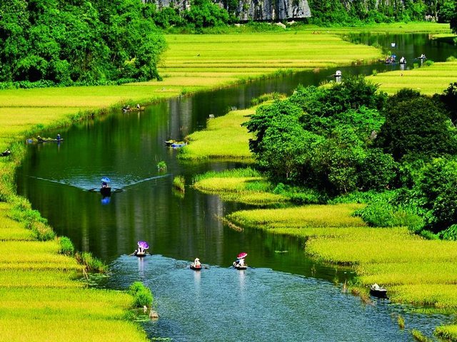 Nhắc đến những cánh đồng lúa chín đẹp bậc nhất Việt Nam, nhiều người sẽ nghĩ ngay đến những thửa ruộng bậc thang ở lưng chừng núi hay những cánh đồng trải dài bất tận ở miền Tây nhưng còn một địa điểm tuyệt đẹp khác đã nổi danh nhưng không phải ai cũng biết, lúa vàng ở Tam Cốc, Ninh Bình.