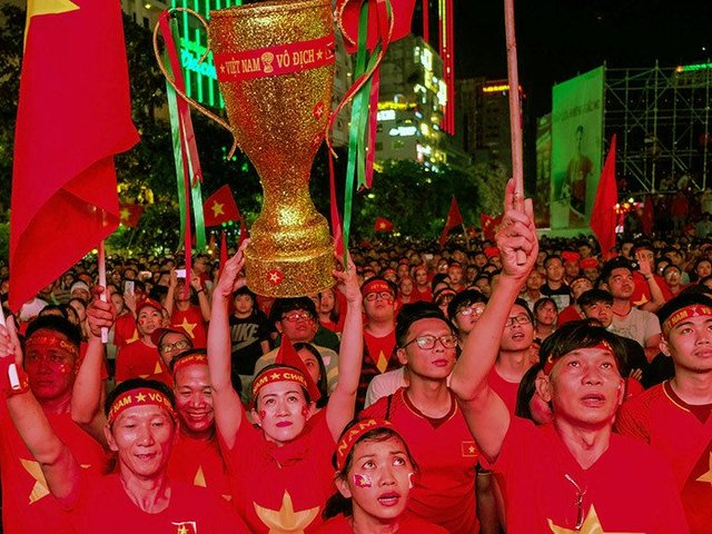 Sau chiến thắng của đội tuyển Việt Nam tại trận bán kết lượt về trước đội tuyển Philippines trên sân vận động Mỹ Đình, cổ động viên cả nước ùa ra đường ăn mừng.