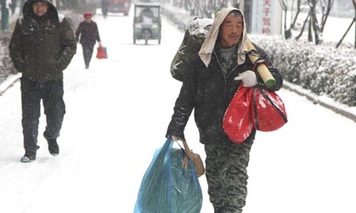 Công nhân Trung Quốc đi bộ 40 km dưới tuyết về quê ăn tết