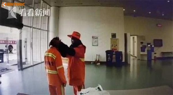 Ấm lòng hình ảnh hai vợ chồng lao công động viên nhau vượt qua dịch bệnh giữa trời đông buốt lạnh