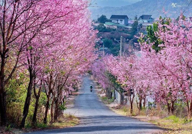 Đầu năm mới là thời điểm nở rộ của hoa anh đào, hướng dương và cải trắng, hấp dẫn nhiều du khách thích chụp ảnh.