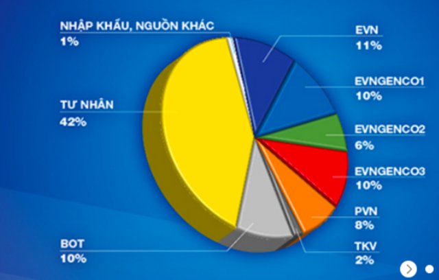 Theo Cục Điều tiết điện lực (Bộ Công Thương), cơ cấu nguồn điện Việt Nam đã có sự thay đổi lớn khi EVN chỉ còn nắm giữ khoảng 37% nguồn điện.