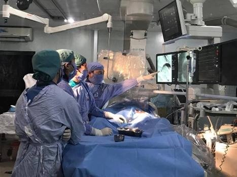 Hai bệnh nhân ung thư gan giai đoạn cuối được bác sĩ Bệnh viện Nhân dân Gia Định, TP HCM, truyền hóa trị liệu trực tiếp qua động mạch gan.
