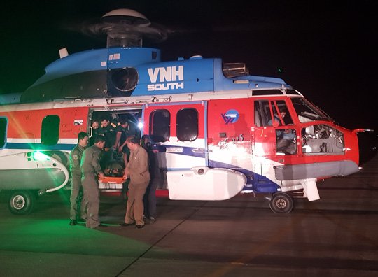 Một ngư dân bị đâm ở vùng biển Trường Sa được Binh đoàn 18 điều trực thăng đưa vào bờ cấp cứu trong đêm
