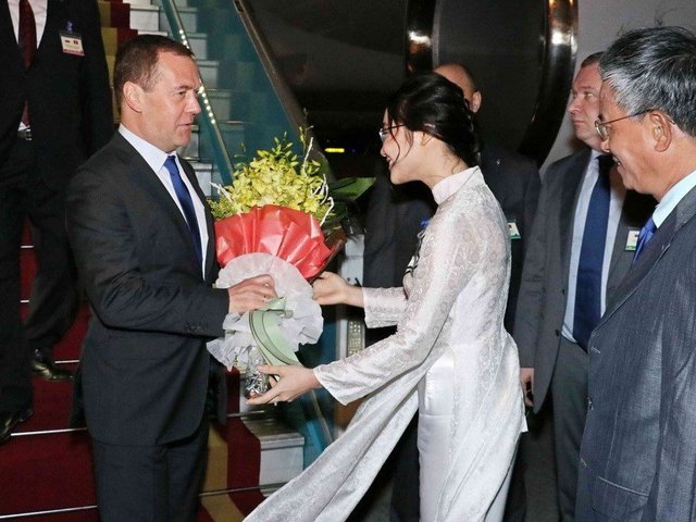 Tối 18/11, Thủ tướng Liên bang Nga Dmitry Anatolyevich Medvedev đến Hà Nội bắt đầu thăm chính thức Việt Nam từ ngày 18-19/11.