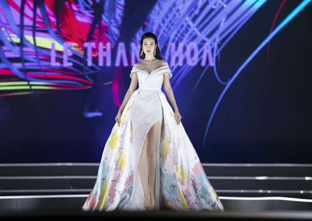 Diện váy đính kim sa với chân váy được xẻ cao, Hoa hậu Mỹ Linh cùng Kỳ Duyên đã trở thành tâm điểm trước khán giả khi tham gia trình diễn trong show thời trang Hoa hậu Việt Nam.