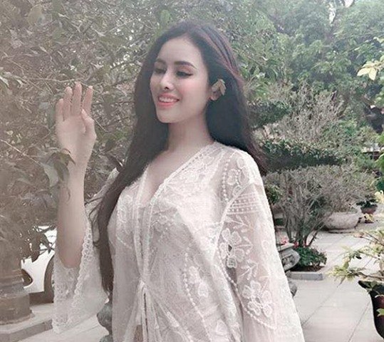 Thư Dung gây tranh cãi khi diện đồ ren xuyên thấu phản cảm lên chùa