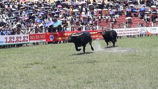 Khán giả, bảo vệ la hét, bỏ chạy tán loạn ở hội chọi trâu Đồ Sơn