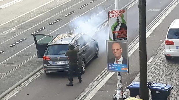 Tay súng bắn ổ khóa, cài thuốc nổ nhưng vẫn không thể phá được cánh cửa để vào giáo đường ở Halle, nơi 70-80 người đang hành lễ.