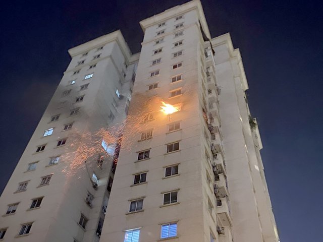 Kịp thời khống chế đám cháy tại tầng 9 khu đô thị Nam Thăng Long