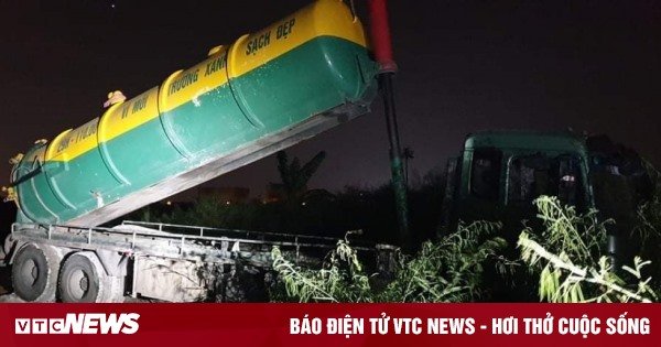Bắt quả tang 2 xe bồn đổ trộm chất thải ra Đại lộ Thăng Long, Hà Nội