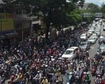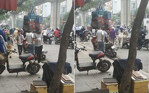 Thấy bóng dáng CSGT, đoàn người dắt xe máy ngược chiều dưới lòng đường Hà Nội