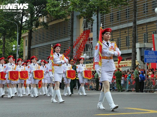 Cận cảnh đoàn quân diễu binh qua phố, khán giả đứng chật hai bên đường cổ vũ