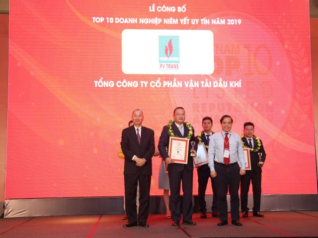 Ngày 8/8 tại Hà Nội, Công ty cổ phần Báo cáo đánh giá Việt Nam (Vietnam Report) đã tổ chức Lễ tôn vinh 10 Công ty niêm yết uy tín năm 2019. Tổng Công ty CP Vận tải Dầu khí (PVTrans) vinh dự là 1 trong 10 Công ty niêm yết thuộc nhóm cổ phiếu Mid – cap và là đơn vị duy nhất của ngành Dầu khí được vinh danh trong đợt này.