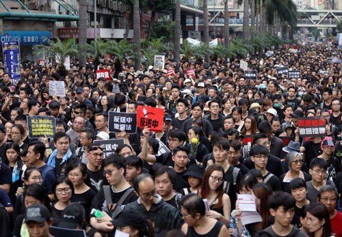 Hàng trăm ngàn người mặc đồ đen xuống đường ở Hồng Kông hôm 16-6 đòi hỏi lãnh đạo đặc khu hành chính này - bà Lâm Trịnh Nguyệt Nga - từ chức.