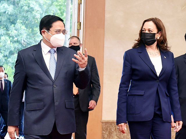 Ngày 25/8, tại trụ sở Chính phủ, Thủ tướng Chính phủ Phạm Minh Chính đã tiếp Phó Tổng thống Hoa Kỳ Kamala Harris đang có chuyến thăm Việt Nam.