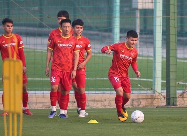 Tiền vệ Nguyễn Quang Hải tập buổi đầu tiên cùng đội tuyển Việt Nam sau khi trở về từ Pau FC.