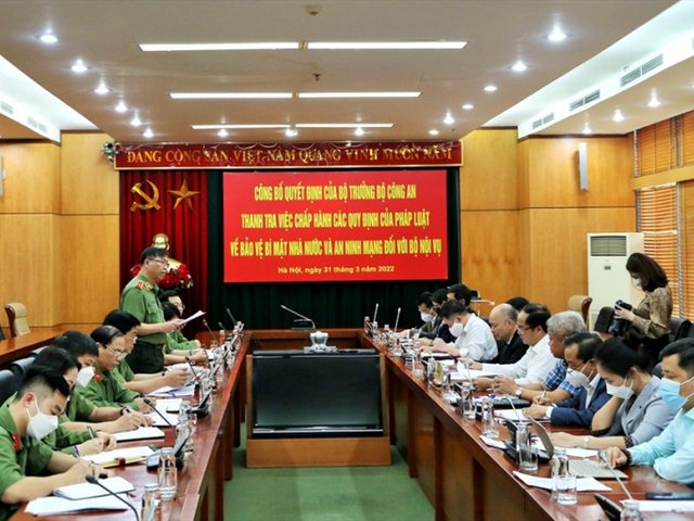 Thực hiện Quyết định số 1799/QĐ-BCA-X05 ngày 16/3/2022 của Bộ trưởng Bộ Công an, chiều 31/3 tại Hà Nội, theo ủy quyền của lãnh đạo Bộ Công an, Thiếu tướng Trần Đức Tuấn, Chánh Thanh tra Bộ Công an đã chủ trì buổi công bố quyết định thanh tra việc chấp hành các quy định của pháp luật về bảo vệ bí mật Nhà nước (BMNN) và an ninh mạng (ANM) đối với Bộ Nội vụ.