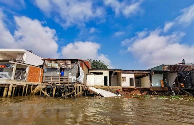 Sụt lún nhấn chìm 9 căn nhà xuống sông ở Sóc Trăng