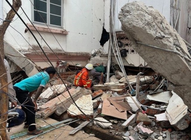 Đoàn cứu hộ Quân đội Nhân dân Việt Nam đang phối hợp với các lực lượng giải cứu nam thanh niên còn sống sót sau trận động đất ở Myanmar.