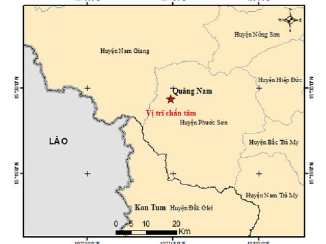 Trận động đất có độ lớn 3 độ richter xảy ra tại huyện miền núi Phước Sơn, tỉnh Quảng Nam.