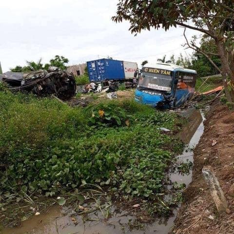 Kì lạ xe khách, xe con bay khỏi đường, 2 người chết