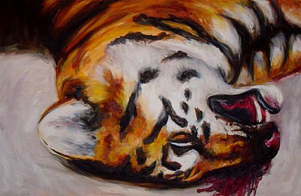 Đang rảo bước, tôi bỗng khựng lại. Ở góc khu vườn, ba con hổ con được ngâm trong một bình rượu khổng lồ.