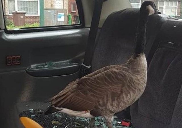 Ngỗng phá vỡ cửa kính, lao vào trong taxi
