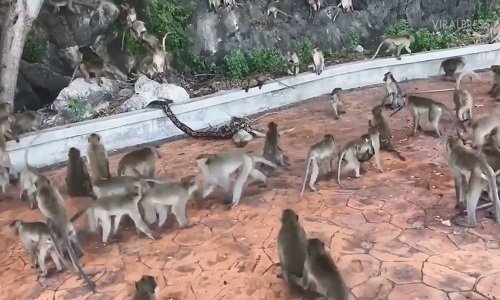 Đàn khỉ bất lực nhìn trăn siết chết đồng loại