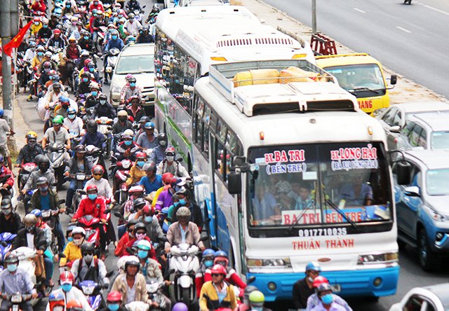 Dòng xe nối dài nhiều km chờ qua cầu, phà về miền Tây