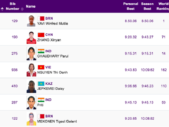 20h20 hôm nay 2-10, Nguyễn Thị Oanh sẽ bước vào nội dung sở trường 3.000m vượt chướng ngại vật với tham vọng đổi màu huy chương, bất chấp thách thức rất lớn từ đối thủ.