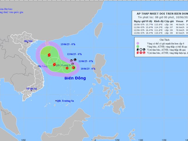 Vùng áp thấp trên Biển Đông đã mạnh lên thành áp thấp nhiệt đới và tiếp tục mạnh lên thành bão, ảnh hưởng đến vùng biển từ Quảng Trị đến Quảng Ngãi.