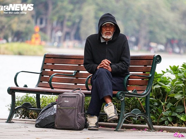 Người vô gia cư co ro bên vỉa hè Hà Nội giữa trời đông lạnh thấu xương