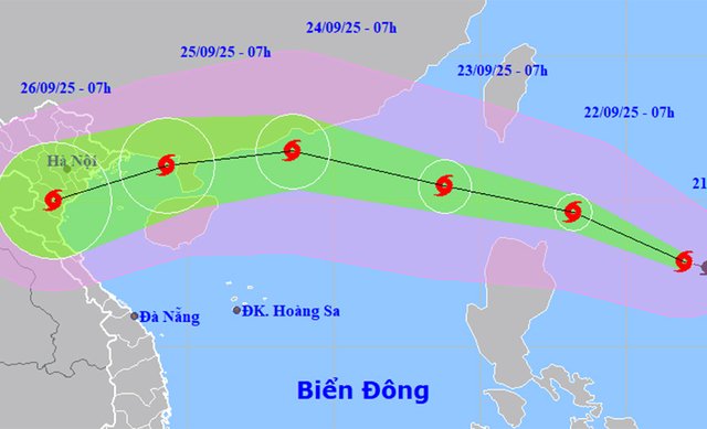 Theo nhận định của cơ quan khí tượng, trong 24 giờ tới, áp thấp nhiệt đới sau khi di chuyển vào Biển Đông sẽ mạnh lên thành bão, miền Bắc mưa lớn từ 22-24/9.