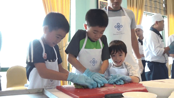 Những du khách Hàn Quốc, Nhật Bản tỏ ra hào hứng khi lần đầu làm bánh nướng đón Trung thu tại Việt Nam.