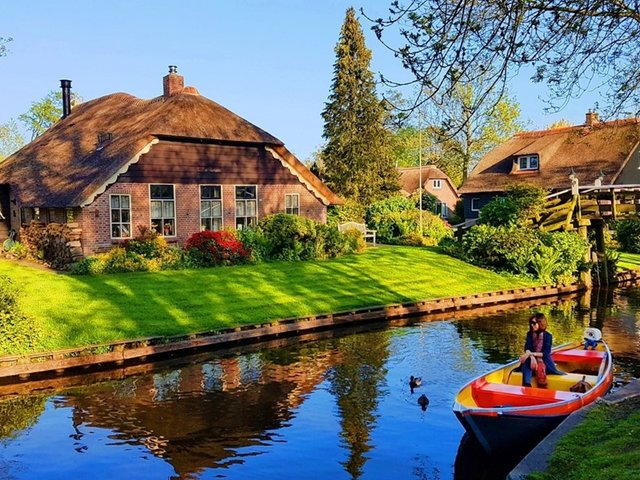 Làng Giethoorn của Hà Lan mang vẻ bình yên, tách biệt với thế giới. Sông nước yên ả, khung cảnh mộng mơ yên tĩnh như bước ra từ truyện cổ tích.