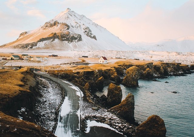 Từng góc nhỏ bình yên ở làng chài Arnarstapi tại miền Tây Iceland với tuyết trắng phủ kín được chàng trai Sài Gòn chụp lại.