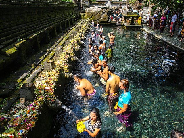 Ở đảo ngọc Bali (Indonesia), ngoài những bãi biển đẹp, món ăn đặc trưng, nơi đây còn có đền Pura Tirta Empul với nghi lễ tắm nước thánh độc đáo, thu hút nhiều du khách nước ngoài.