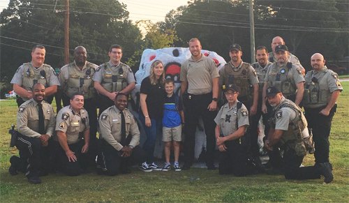 Cade Dixon (9 tuổi, Mỹ) phần nào vượt qua nỗi buồn mất cha trong ngày đi học đầu tiên nhờ sự giúp đỡ của đội cảnh sát hạt Hall.