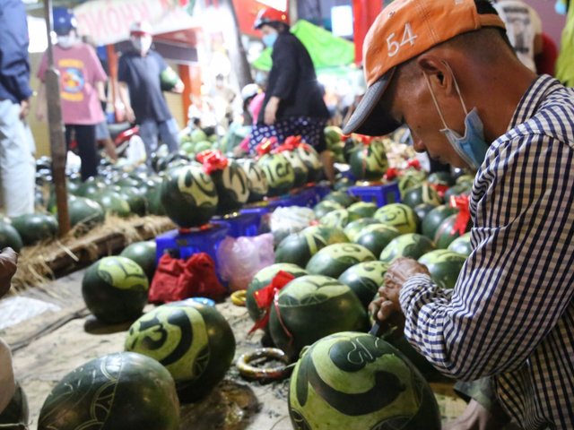 Trong đêm 29 và sáng 30, những người buôn bán tranh thủ xổ hàng để trả mặt bằng và kịp về quê đón Tết. Tại tuyến đường Hậu Giang, quận 6, TP Hồ Chí Minh dưa hấu bất ngờ cháy hàng, mặc dù giá cao ngất ngưởng. Nhiều sạp dưa hấu bán hết sớm thu dọn đồ đạc và về quê đón Tết sớm...