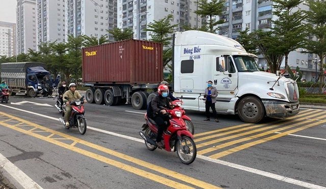 Lực lượng Công an phải dùng tới thiết bị chuyên dụng để đưa được thi thể tài xế xe tải mắc kẹt trong cabin sau vụ va chạm với xe đầu kéo ra ngoài.