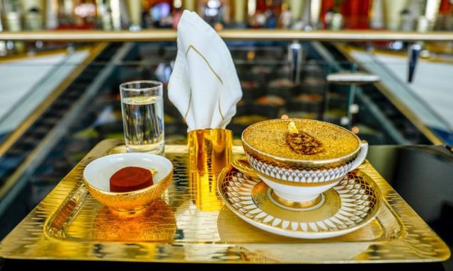 Cappuccino phủ vàng hay cocktail trộn vàng là những món ăn đắt đỏ được giới nhà giàu ở Dubai ưa chuộng.