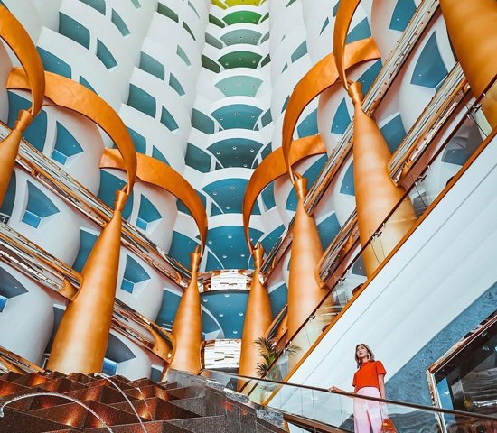 Không gian bên trong khách sạn Burj Al Arab ở Dubai có hơn 1.950 mét vuông dát vàng 24K.