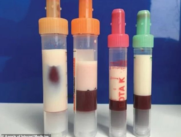 Máu của một người đàn ông đã chuyển sang màu trắng sữa do lượng chất béo quá lớn tích tụ trong động mạch và tĩnh mạch.