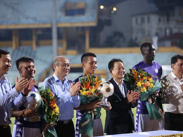 Quả bóng vàng Việt Nam 2019 - Đỗ Hùng Dũng đã không thể một lần sút tung lưới đối thủ Đồng Tháp trong ngày được câu lạc bộ Hà Nội vinh danh.