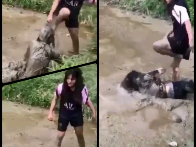 Hai bạn nữ lao vào cấu xé nhau rồi cùng lăn xuống ruộng bùn, một bạn thất thế bị đối thủ liên tục dùng tay đánh, dùng chân đạp 9 lần vào bụng, đầu và mặt rất dã man.