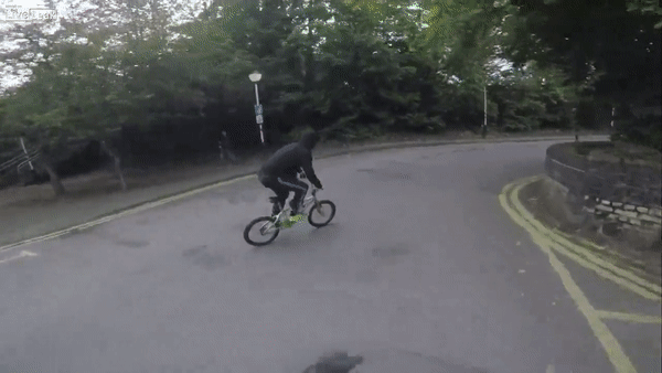 Giật điện thoại của một phụ nữ đứng bên đường, tên cướp mặc áo trùm đầu phóng xe đạp không ngờ hậu quả.