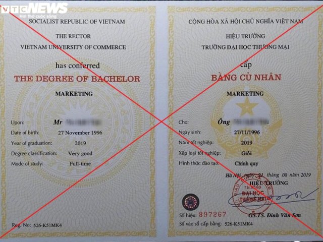 “Giá chỉ vài triệu đồng, giao tận tay bằng cao đẳng, đại học phôi gốc, chữ ký sống, mộc sống, bằng thật của trường tuồn ra, kèm bảng điểm và 3 bản photo công chứng”.
